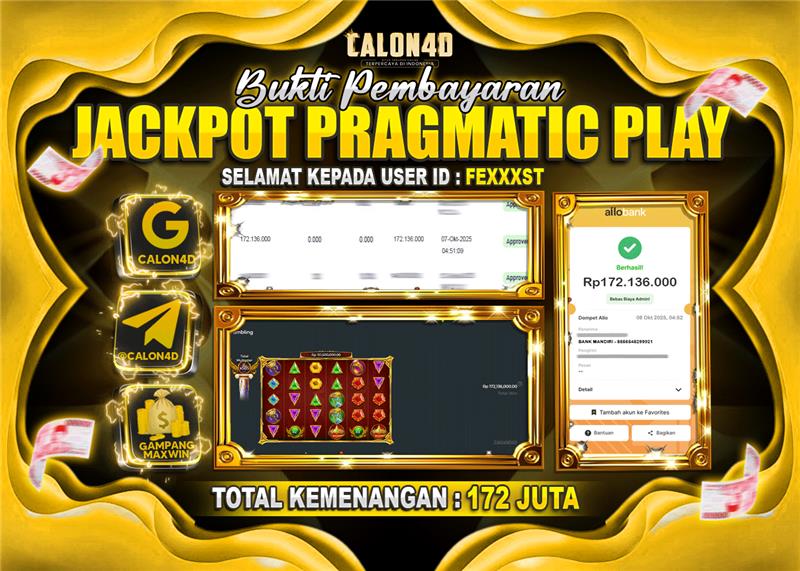 Selamat Kepada user ID FEXXXST mendapatkan kemenangan besar pada permainan PRAGMATIC PLAY berada di rate tertinggi Gates of Olympus Super Scatter kemenangan BESARNYA 172JUTA DI CALON4D Sekali lagi selamat kepada member setia kami dan juga sudah mempercayakan situs kami, CALON4D