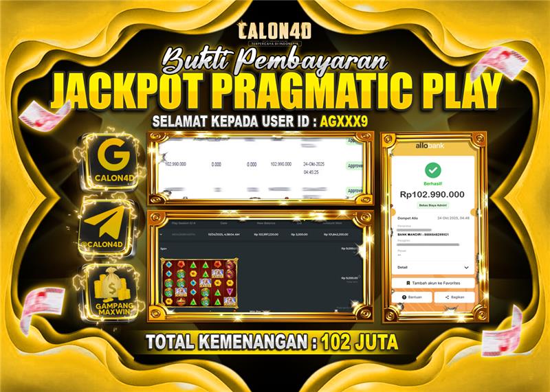 User ID AGXXX9 berhasil meraih kemenangan fantastis di PRAGMATIC PLAY, dengan kemenangan besar di Gates of Olympus Super Scatter senilai 102JUTA