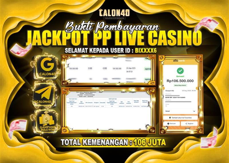 Selamat Kepada user ID BIXXXX6 mendapatkan kemenangan besar pada permainan PP LIVE CASINO berada di rate tertinggi SPACEMAN kemenangan BESARNYA 106 JUTA DI CALON4D Sekali lagi selamat kepada member setia kami dan juga sudah mempercayakan situs kami, CALON4D