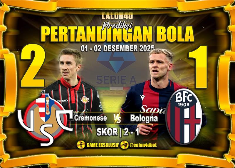 (03:45Wib/Live) Bologna VS Cremonese (2 – 1)