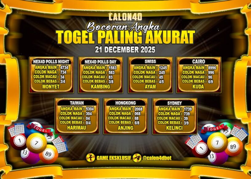 PREDIKSI TOGEL TERAKURAT – 21 Desember 2025